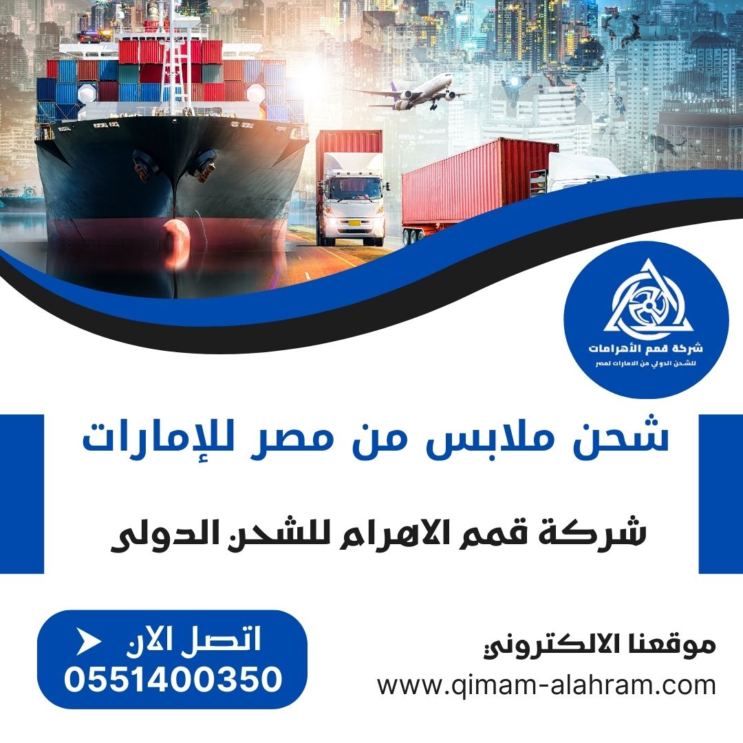 شحن ملابس من مصر للامارات اتصل الان 0551400350 | لا شك أن عملية شحن ملابس من مصر للامارات تتطلب ترتيبات لوجستية خاصة لضمان وصولها بحالة ممتازة. في الواقع، يعتبر الشحن الدولي للأغراض الشخصية، وخاصة الملابس، من أكثر الخدمات طلباً. لهذا السبب، تقدم لكم شركة قمم الاهرامات للشحن الدولى حلولاً متكاملة تشمل كل من شحن جوي شحن بحري شحن بري ونشحن جميع أنواع الشحنات. بالإضافة إلى ذلك، سنقدم لك في هذه المقالة كل ما تحتاجه لتبدأ عملية الشحن بثقة.