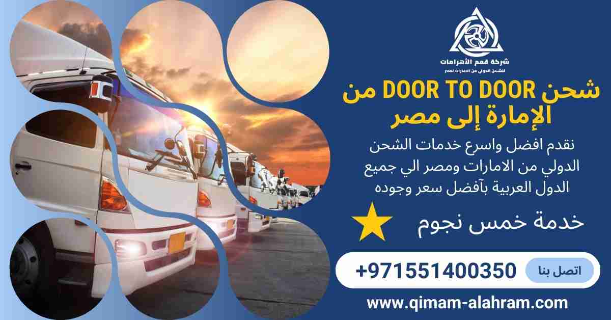 شحن door to door من الامارات الي مصر يمثل الحل اللوجستي الأكثر راحة للأفراد والشركات الذين يرغبون في نقل بضائعهم دون عناء التنقل بين الموانئ والمستودعات الجمركية. نحن في شركة قمم الاهرامات نضمن استلام شحنتك من باب بيتك وتوصيلها لوجهتك النهائية في مصر.