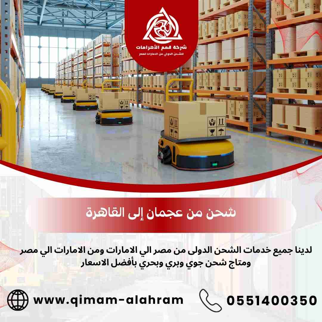 شركة شحن من عجمان الي القاهرة متخصصة في توفير حلول لوجستية آمنة وسريعة لجميع أنواع الشحنات. قمم الأهرامات تقدم خدمة متكاملة من الاستلام في عجمان حتى باب منزلك في القاهرة مع خصومات حصرية.